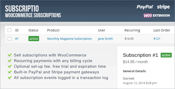 Subscriptio – Woocommerce Subscriptions: Gestión de suscripciones y planes de pago mensuales con WooCommerce.